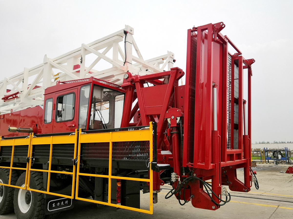 自動(dòng)升降工作臺(tái)是一種主要用于修井作業(yè)過(guò)程中操作工人站立工作的平臺(tái)。平臺(tái)可自動(dòng)進(jìn)行升降和翻轉(zhuǎn),工作臺(tái)翻轉(zhuǎn)后可隨修井機(jī)進(jìn)行運(yùn)輸;可滿(mǎn)足從平臺(tái)的三個(gè)方向上、下管的要求;設(shè)有油污收集裝置,避免油污污染環(huán)境,滿(mǎn)足油田環(huán)保的要求。