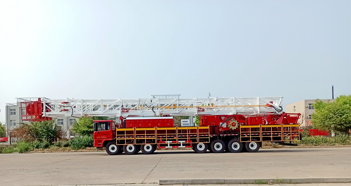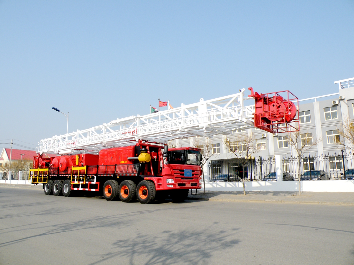 車裝鉆機(jī)是將動(dòng)力系統(tǒng)、絞車、井架、游車系統(tǒng)及傳動(dòng)系統(tǒng)等部件安裝于自走式底盤上。整機(jī)具有結(jié)構(gòu)緊湊,集成度高,占地面積小,移運(yùn)快捷,搬遷效率高等特點(diǎn)。